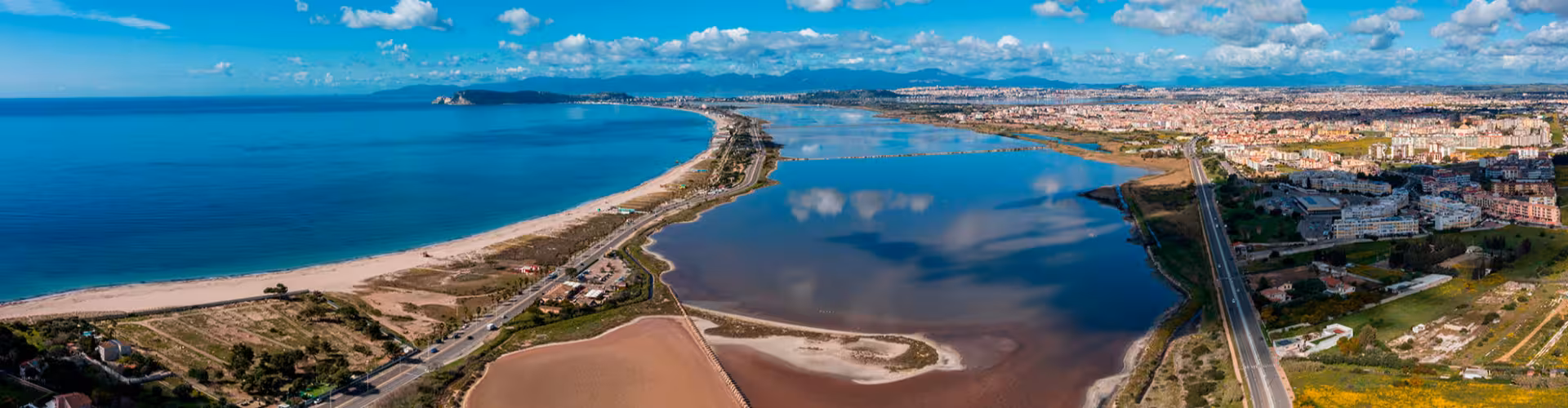 Quartu Sant'Elena lies on the Golfo degli Angeli in southern Sardinia, directly adjoining Cagliari to the east. Cagliari Elmas Airport and the Cagliari ferry port are the main access points, making Quartu an easy extension of a stay in the metropolitan area of Italy.