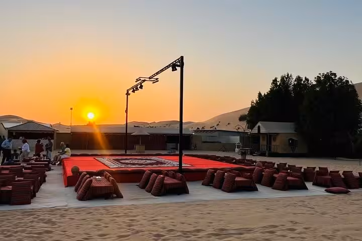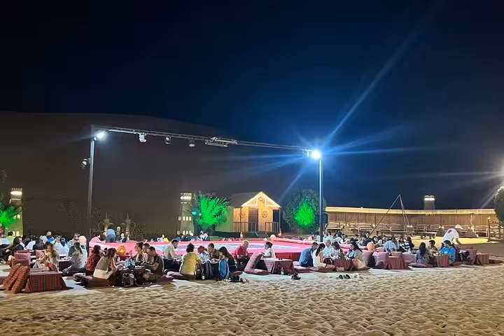 - Experience flow: Dune bashing first, then camp activities, then dinner and live shows, then hotel drop-off